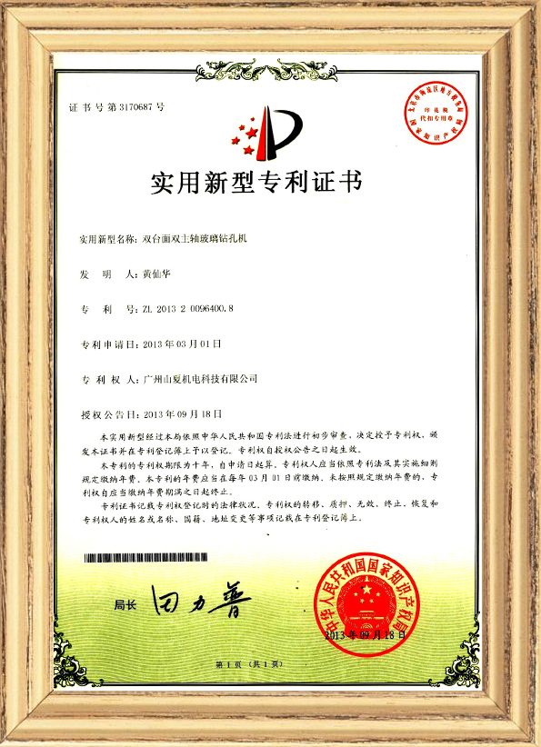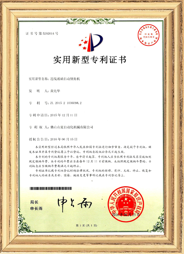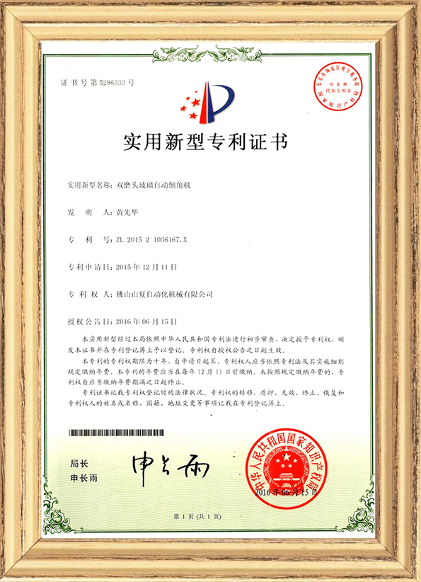 針對自動連線倒角機在玻璃領域的應用,山夏機械已經于2015 年申請并2017 年成功獲得連線倒角機的發明專利!并且通過多年的磨合,其功能融合一些高端客戶的特殊要求,完全滿足淋浴房玻璃/家電玻璃/銀鏡環保鏡/家私玻璃/高端防火玻璃/工程玻璃/大理石巖板等材料的的各種倒角(圓角/斜角)加工要求! 本著“品質,創新,誠信、服務”的宗旨,以”客戶需求”為根本,為客戶創造更大的價值!山夏公司不斷開拓進取,實現客戶,員工,公司共享發展,共贏未來!